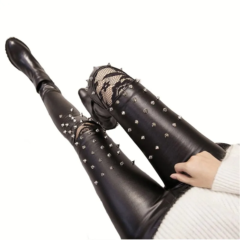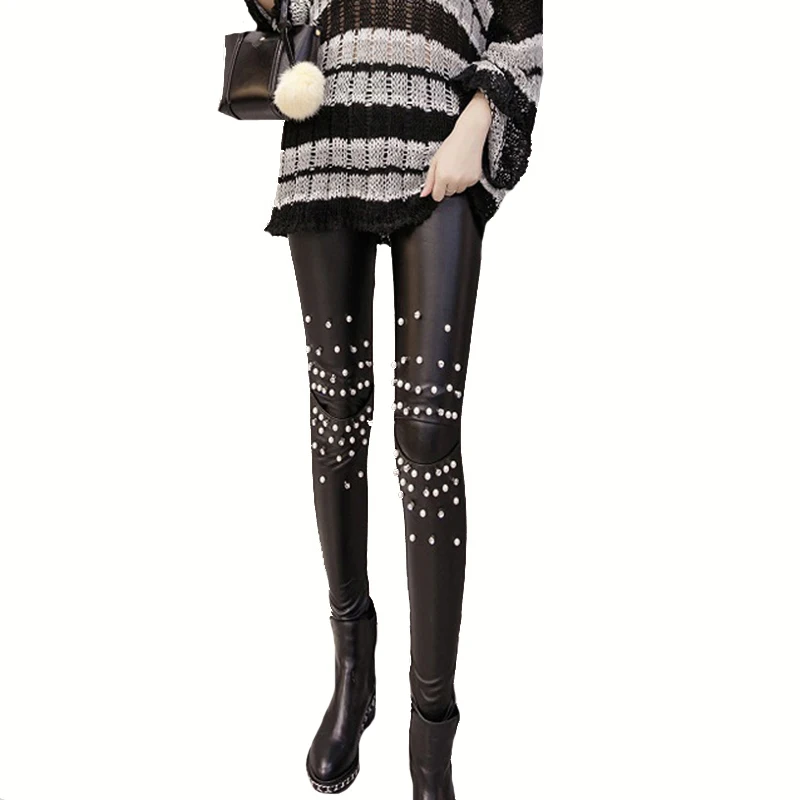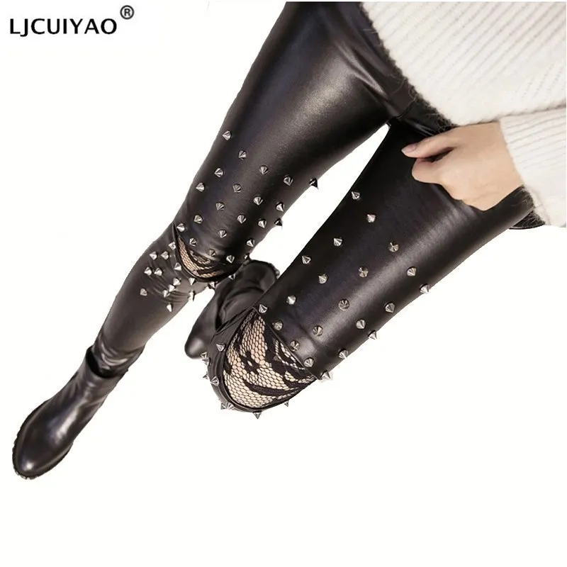 New LJCUIYAO Women Faux Leather Leggings Winter Keep Warm High Waist Jegging Ankle-length Large Szie Plus Velvet Female Mesh Legging