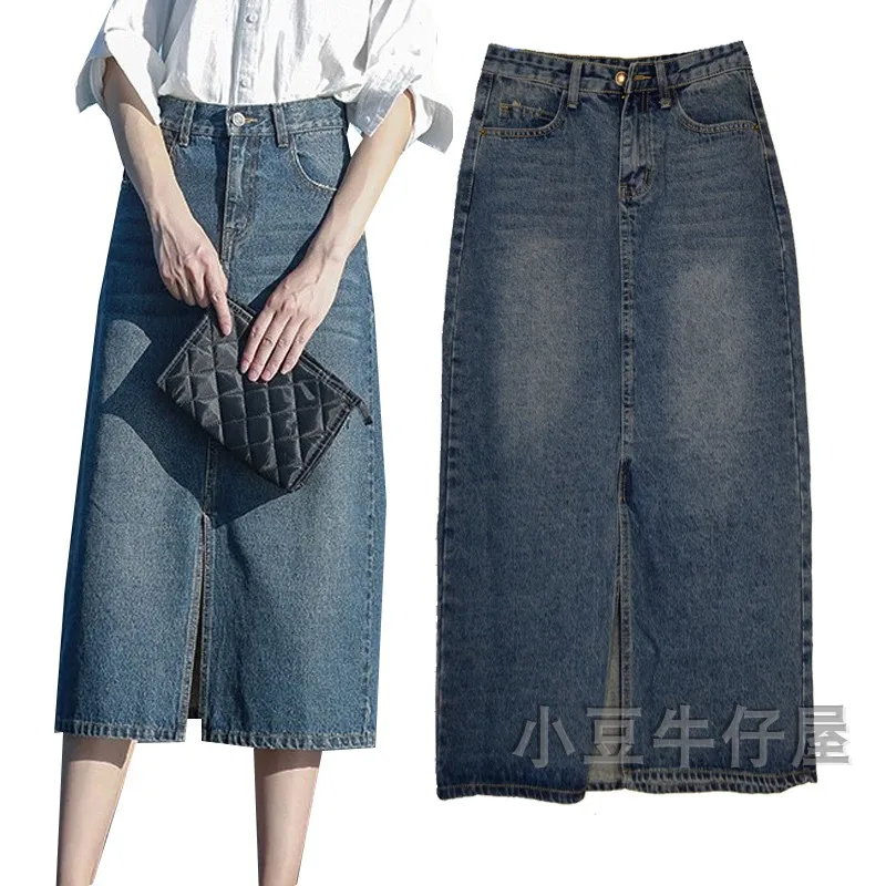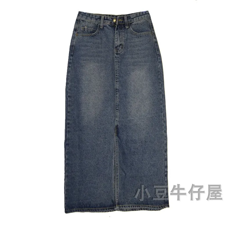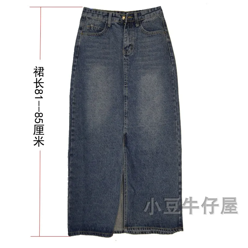 Images of Free Shipping 2019 New Fashion High Waist Long Maxi A-line S-XL Plus Size Denim Jeans Spring And Summer Women Skirts With Slit :