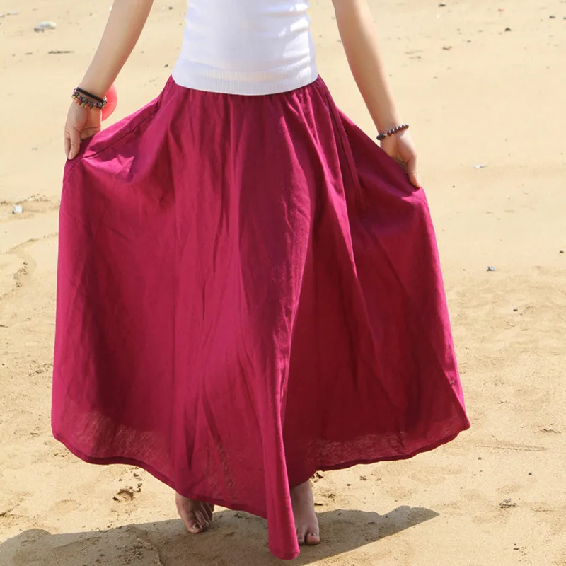 Images of Free Shipping 2013 Fashion Women Summer Spring New Linen Cotton Long Maxi Skirt Plus Size Red Skirt Bohemian Beach Ladies Skirts :