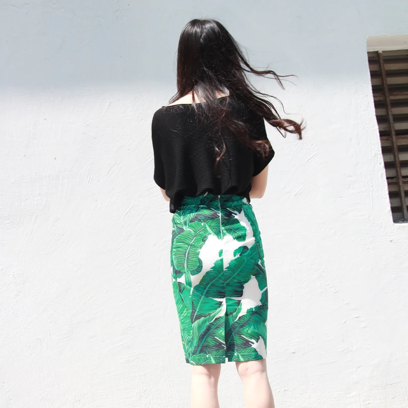 Images of Free Shipping 2018 New Fashion Elegant Knee Length Women Skirts Pencil S-2XL High Waist Summer Skirt Green Spring High Quality :